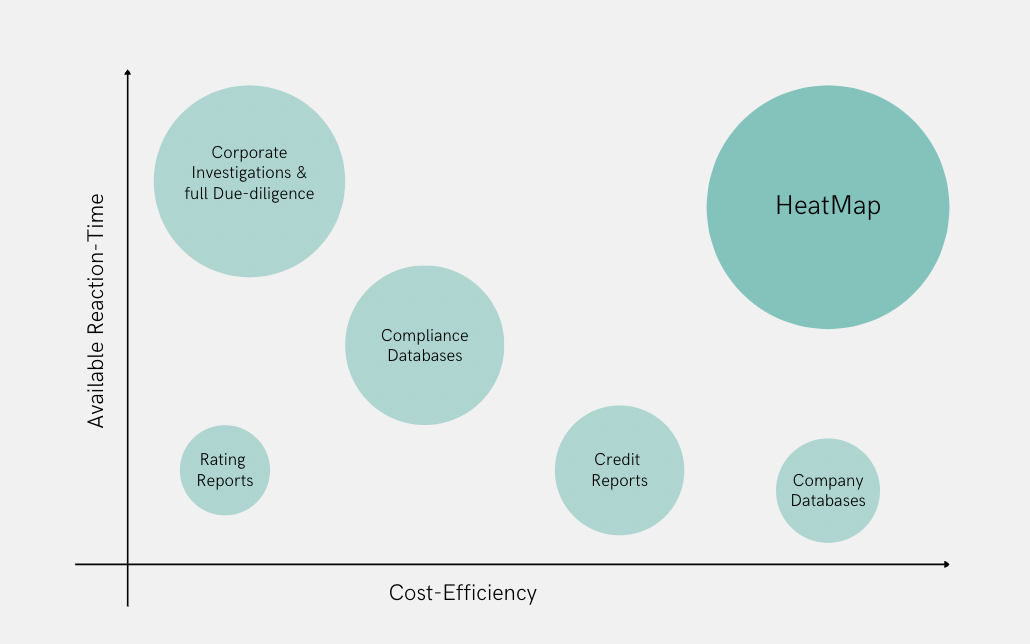 HeatMap is a set of parameters, tailored to the requirements of your project. Based on these risk factors, the regular updates make sure you stay up to date with all relevant developments.